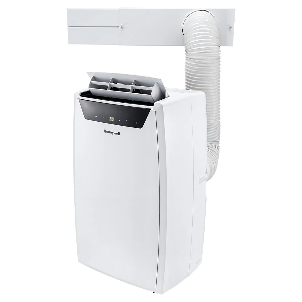 The full-function remote control allows you to operate each feature from across the room. Unlike a fixed air conditioner, the Honeywell MN1CFSWW8 Portable Air Conditioner requires no permanent installation. Smooth-gliding wheels make sliding it from room to room a breeze. This portable ac unit comes equipped with everything needed, including a flexible exhaust hose and an easy-to-install window venting kit, which can be removed when the ac unit is not in use.
