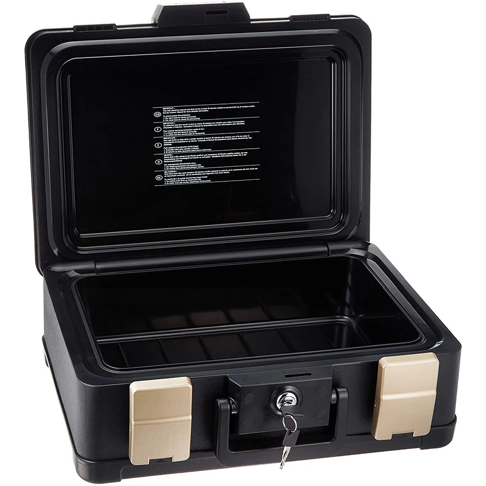 The Honeywell Model 1103 Fire/Water Chest features a storage capacity of .27 cubic feet. Secure unprecedented levels in peace of mind with this chest’s ability to withstand a fire of up to 1550° F for thirty minutes. The addition of a waterproof seal and two side latches guards against emergency sprinklers, floods and various other forms of water damage. These features make it an ideal candidate for stashing all of your personal documents, digital media and various other valuables. The box is also large enough to store your 8 1/2 x 11 in. paper flat. For security measures, this box utilizes a key lock system. A carry handle is also included and adds even more versatility to an already flexible product.