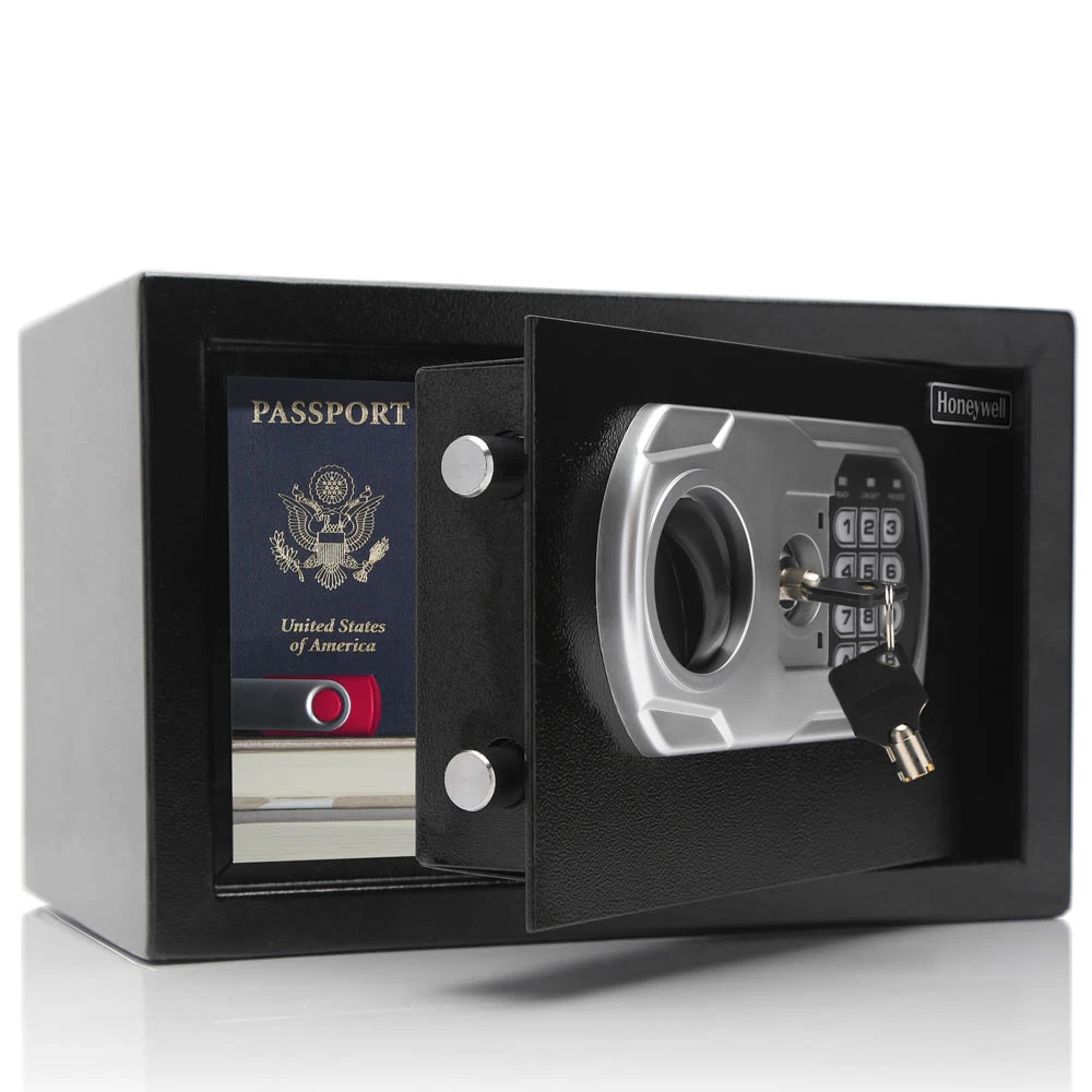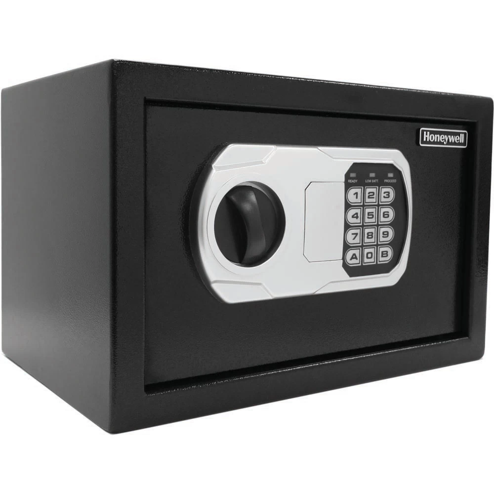 Fulfilling a series of requirements, the Honeywell Steel Security Safe is officially California-DOJ Approved. Specifically designed to safeguard small items such as money, wallets, passports, jewelry, prescription drugs and a collection other valuables items, this steel security safe offers a series safety enhancement features. Access via an electronic keypad offers you reliable and quick entry while acting as a steadfast deterrent from prying hands (safe also comes with 2 emergency cut keys). Mounting hardware has been included to increase the number of installation options while also enhancing overall security. You’ll be able to bolt down this DOJ Approved Steel Security Box inside of a cabinet, on top of a shelf or straight into your wood floor. Additional features such as 2 live locking door bolts and a scratch resistance powder coat finish add even more layers to an already impressive steel security safe.