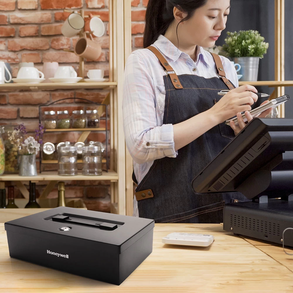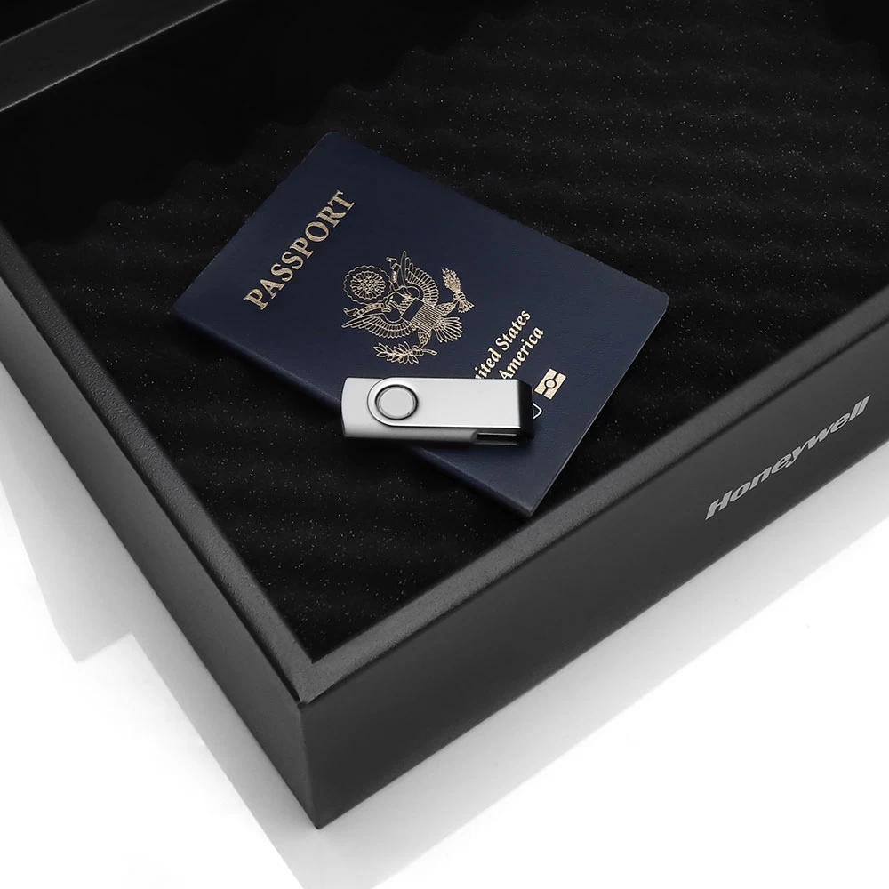 The Honeywell 6124 safeguards petty cash, small electronics and documents from theft, damage and prying eyes. Constructed of double wall insulated steel, this security box resists tampering while offering limited protection against fire damage.