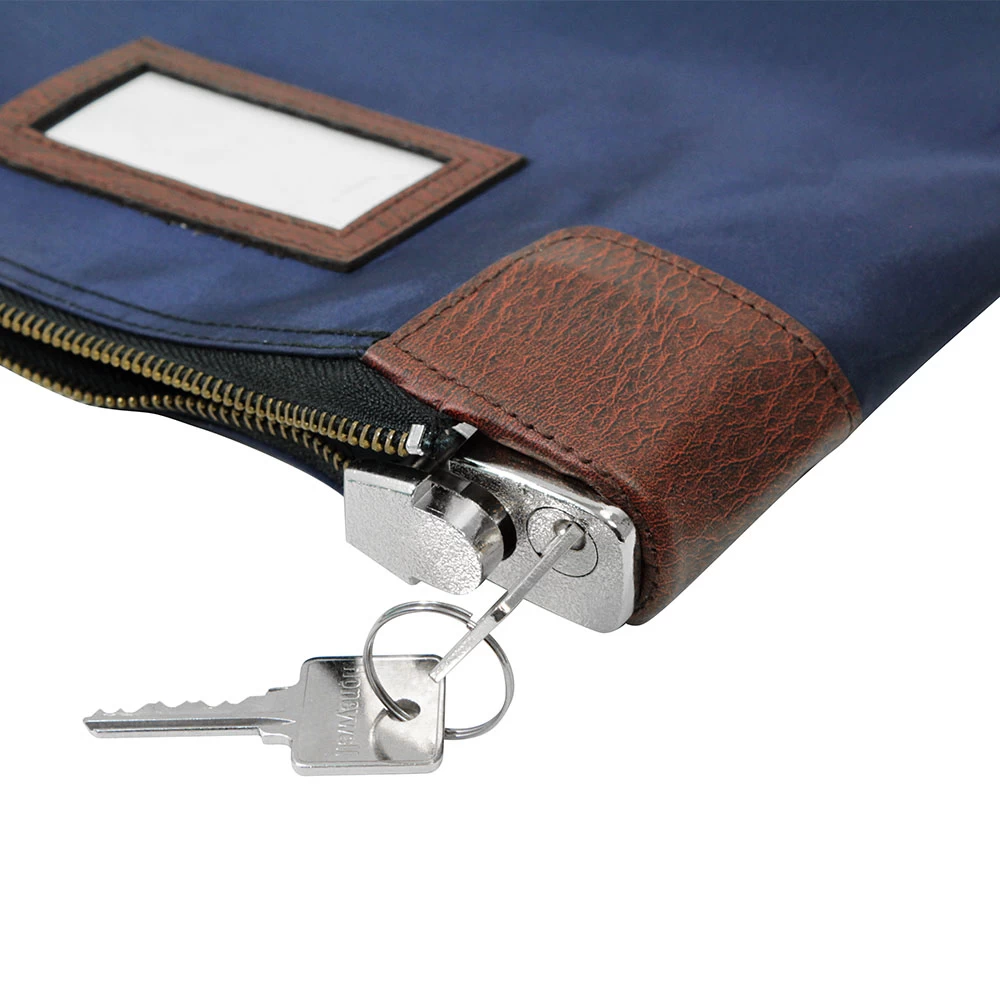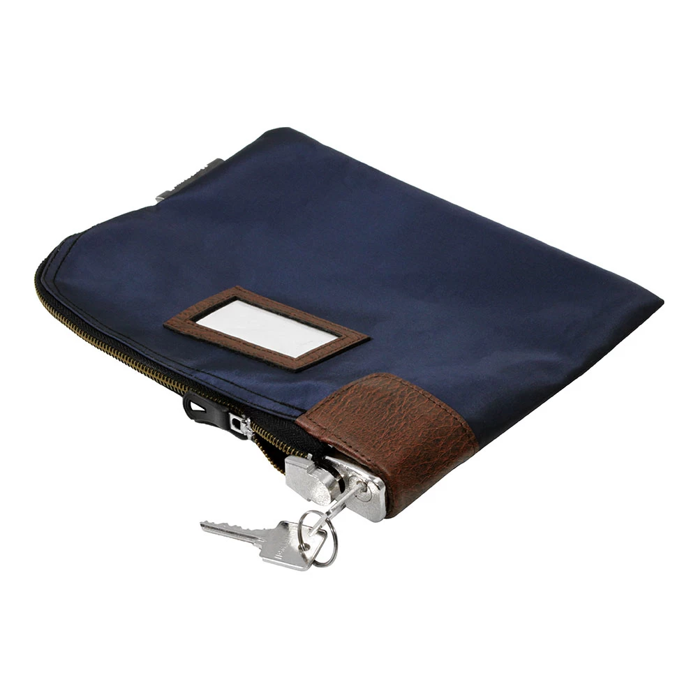 The Honeywell 6505 Key Locking Zipper Deposit Bag is a great way to keep small objects secure when on the go. This blue zipper bag includes a key lock with 2 entry keys, a plastic ID card window located on the front, and a cardstock ID card for labeling purposes. The Honeywell 6505 is backed by a 1 year limited warranty.