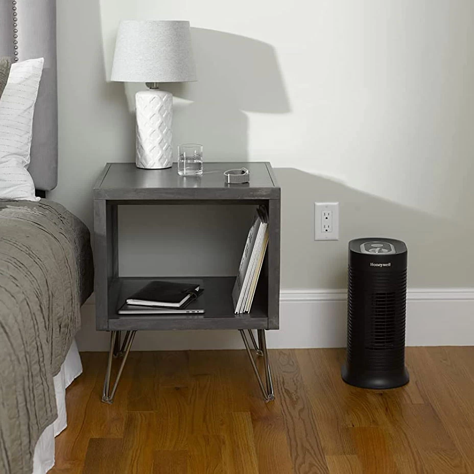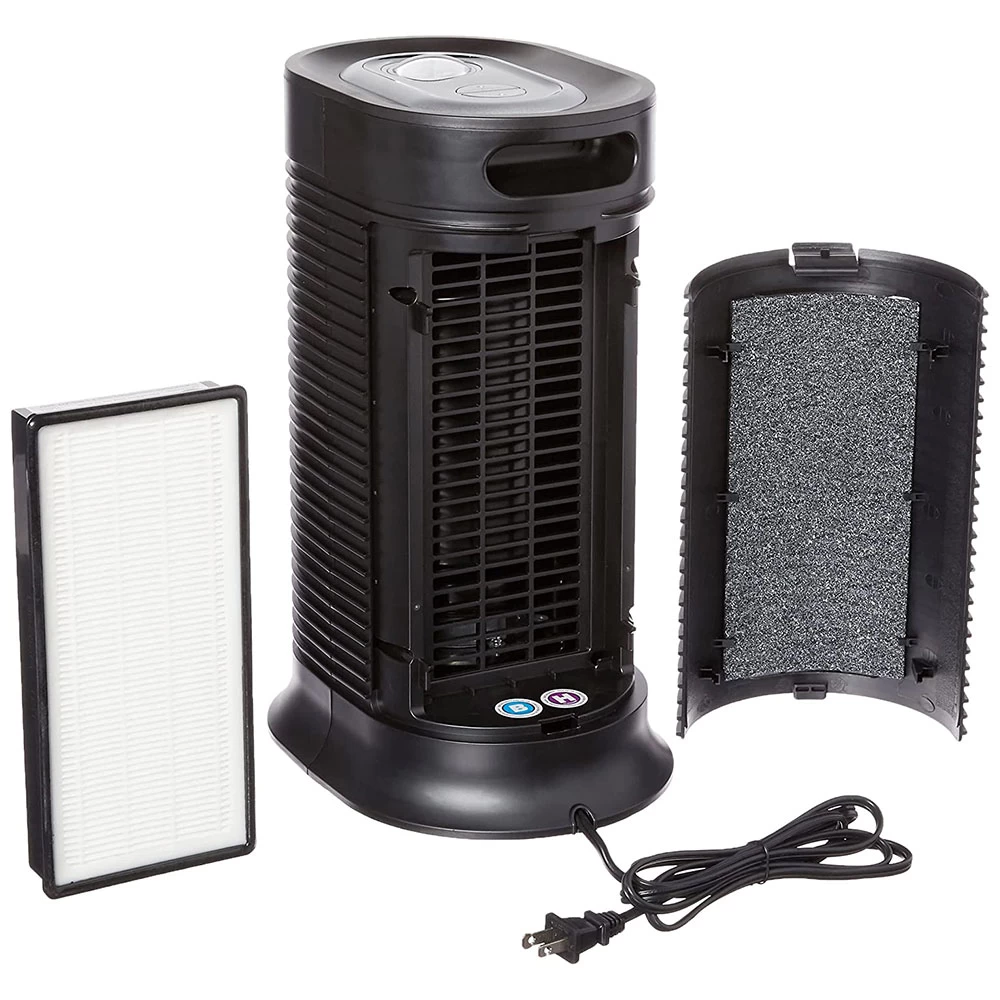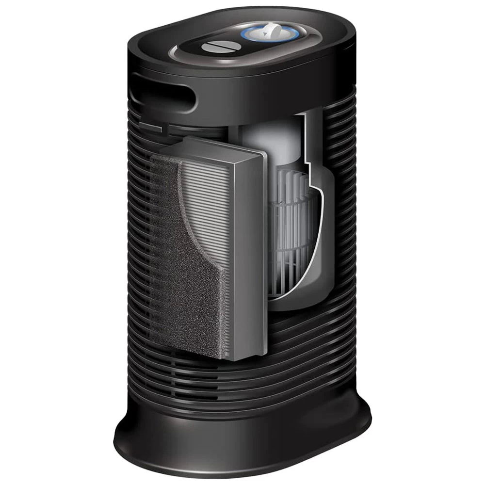 The Honeywell True HEPA Allergen Remover Tower is an excellent solution for helping to provide cleaner, fresher air in small rooms of 75 sq. ft. The portable air purifier features a True HEPA filter that helps captures up to 99.97% of microscopic airborne allergens and particles.1 Air enters the pre-filter where odors and larger particles are trapped. The HEPA Filter then helps captures dust, pollen, dander, smoke and other particles 0.3 microns and larger. This makes it a great choice to use as a pet air purifier or air purifier for dust. This hepa air purifier is capable of circulating room air up to 4.8 times an hour and is ENERGY STAR qualified.2