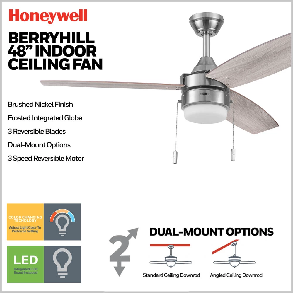 Honeywell Berryhill Ceiling Fans make your home comfortable in all seasons as well as help to reduce energy costs. Enjoy the welcome breeze in any room of your home while looking stylish. Combining sleek lines with modern influences, this multi-position indoor ceiling fan exudes contemporary style and stands as a truly inspiring fixture for your home.