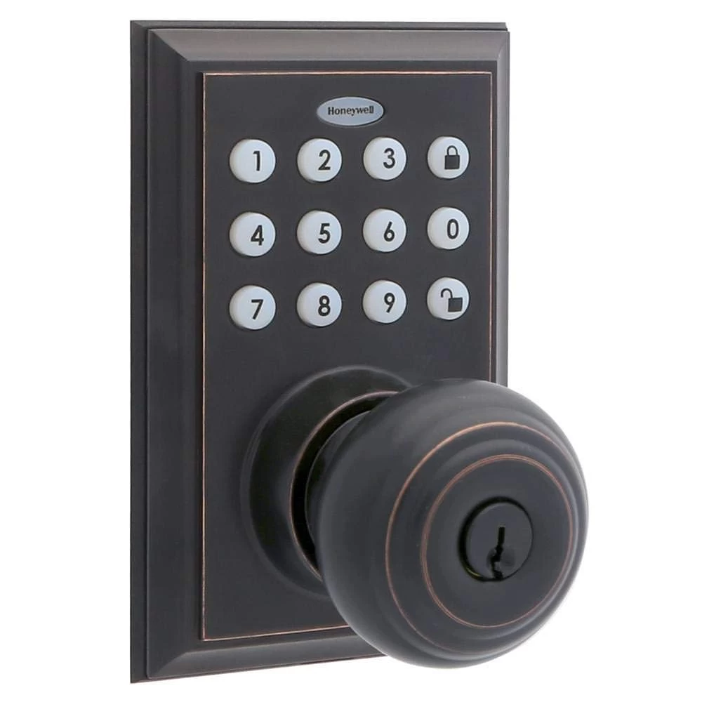 Honeywell Bluetooth Digital Entry Keypad w/Knob Locks provide keyless convenience. You can create and send permanent, temporary (timed), or one-time use e-keys and digital pass codes to anyone via your smart phone. The app will also allow you to view and monitor entry records and get entry notifications. This smart lock can be used with a traditional key, eKey (via the free Smartphone App), or digital passcode entered on the keypad.