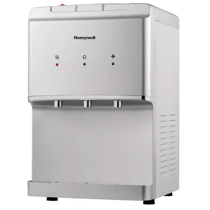 The Honeywell Countertop Top Load Tri-Temperature Water Dispenser offers an even more convenient and readily accessible solution for staying hydrated at home and in the workplace. Standing at about the height of an average microwave, this small water cooler can be placed in a variety of settings that a traditional water dispenser may not. It’s the sort of space saving design that allows this Honeywell Water Cooler to mesh perfectly with office and kitchen countertops. This Top Load Water Dispenser comes with three easily identifiable push buttons that dispense hot, room temperature and cold water on command. Overall safety has been enhanced with the addition of a child safety lock that’s capable of preventing accidental burns from the hot water push button. Sleek, efficient and extremely versatile, this Honeywell Top Load Water Dispenser is the perfect solution for incorporating fresh water in the home or workplace.