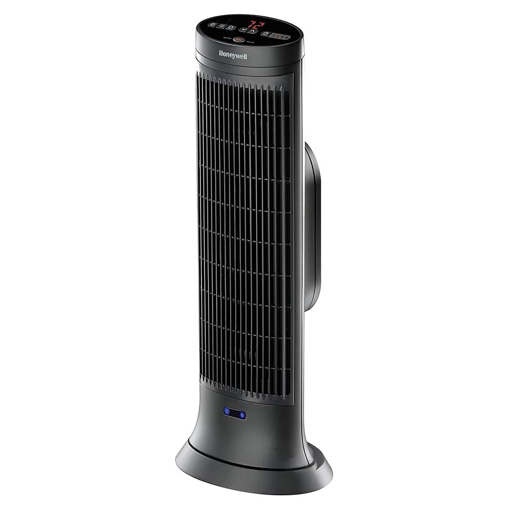 The Honeywell Ceramic Tower with Motion Sensor is an increasingly easy to access portable heater that features an abundance of user-friendly additions. Digital controls and a large LCD display allow for seamless navigation and a hassle proof approach to adjusting and modifying your heater’s output. This portable ceramic room heater has a unique safety motion sensor that shuts off the heater when an object becomes too close. The heater will then turn on once that object is removed. The inclusion of a programmable thermostat, motion sensor capabilities and the freedom to shuffle between multiple heat settings and hour time settings allow for a customizable experience. A permanent dust filter and the capacity to oscillate heat into wide areas of space make this tower heater an excellent addition for medium to large sized rooms.