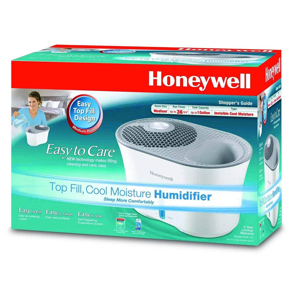 The Honeywell Easy to Care Top Fill Humidifier is an excellent addition for those searching to secure a healthy and pleasant breathing environment for medium sized rooms. This cool moisture humidifier is easy to use and utilizes a top fill design that allows for easy filling. The HCM-710 includes 2 moisture output settings and discharges invisible cool moisture into the air. The inclusion of a self regulating evaporative system and a running time of 36 hours per filling make this an efficient and altogether convenient selection.