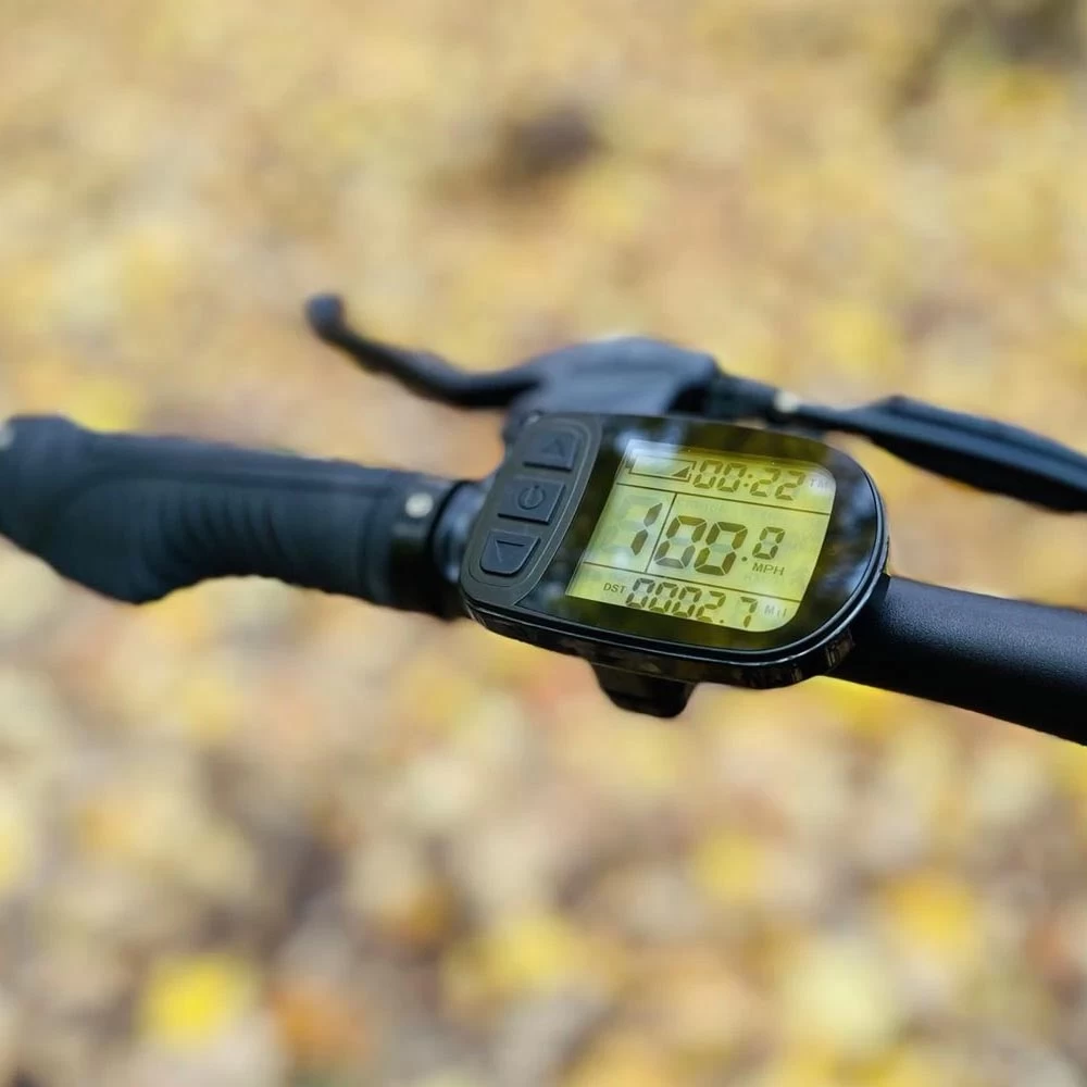 The waterproof backlit LCD smart pedal display instantly displays remaining charge, speedometer, odometer, assist level, and more.