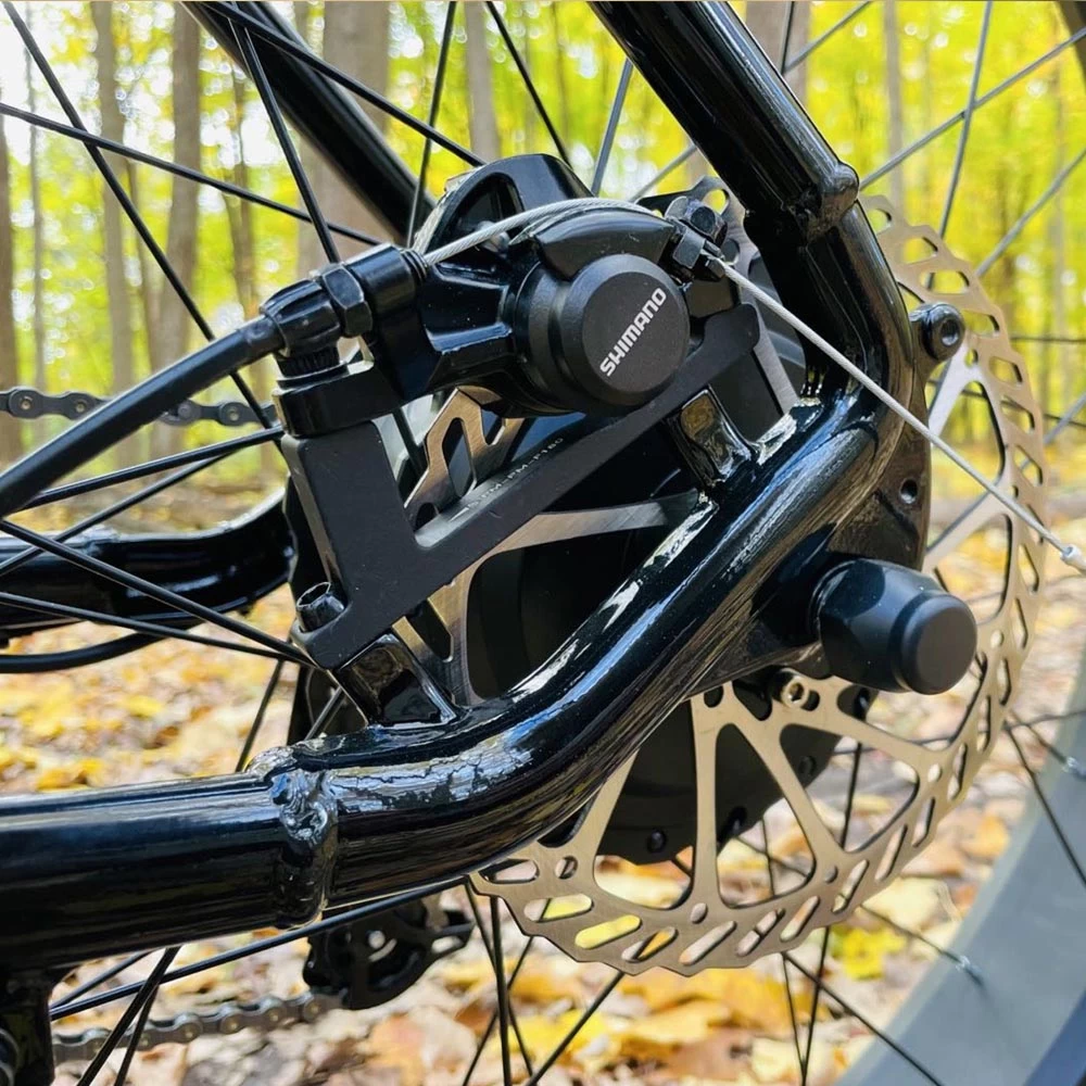 Crafted with sturdy, responsive 180mm mechanical disc brakes, you can ride with complete peace of mind, even on steep or winding trails.