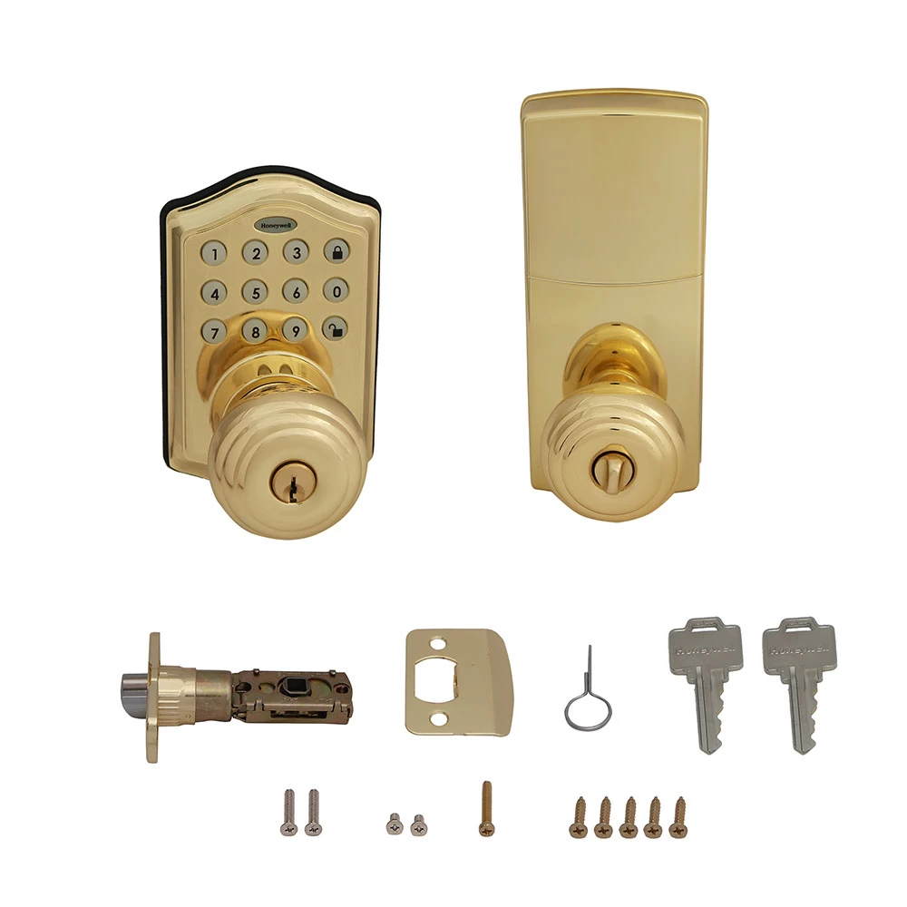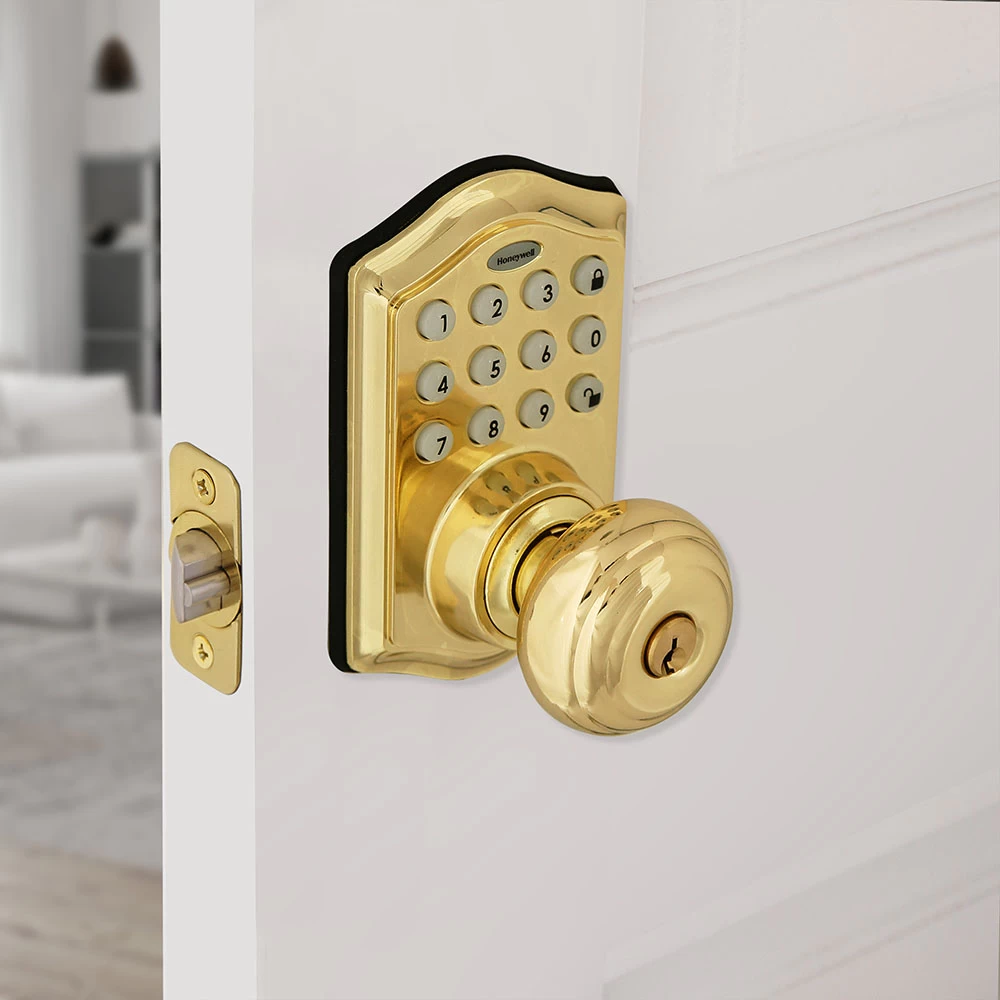 Honeywell Electronic Entry Knob Door Lock With Keypad In Polished Brass, 8732001