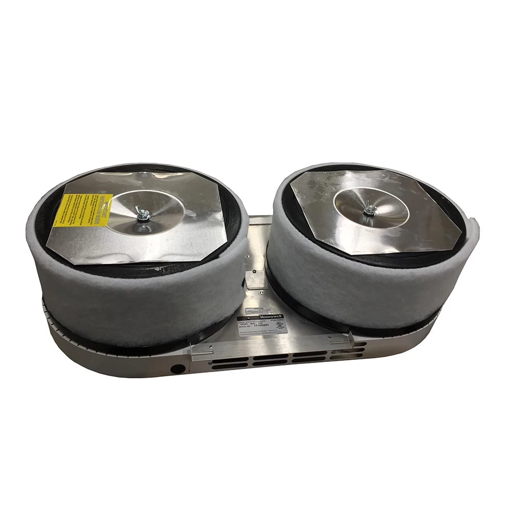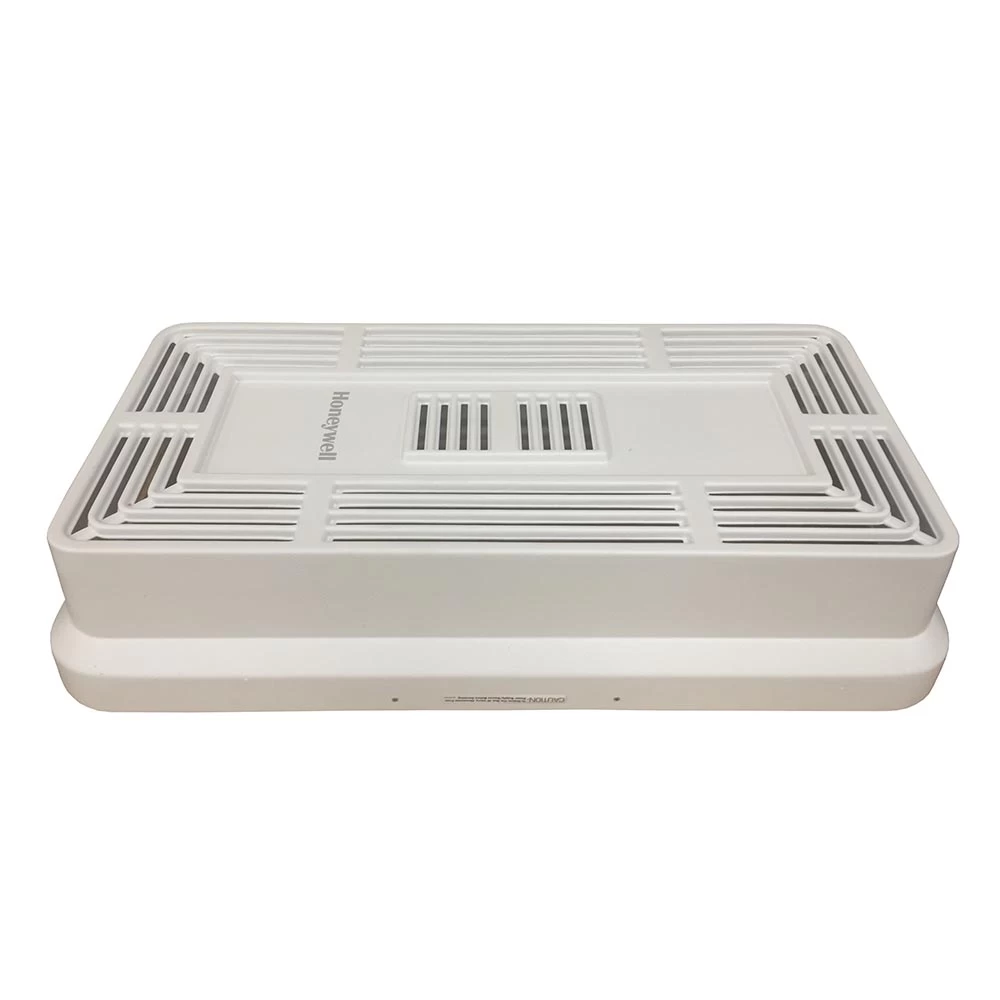 The F114C1008 is a surface mounted Honeywell industrial commercial air cleaner. It cleans by removing particulates, odors, and volatile organic compounds (VOCs) from the air passing through the hospital-grade filter. This filter is certified to be 95% D.O.P. efficient at capturing 0.3 micron air borne particles that pass through the filter such as pollen, cat dander, dust, tobacco smoke, and mold spores. The unit is also equipped with 8-plus pounds of CPZ filters that are specifically formulated for maximum efficiency at reducing a broad range of gasses, odors, and VOCs. Recommended for rooms up to 400 square feet. With a white grill that matches typical fixtures, it blends right into the surroundings. This model is deployed in businesses where particle counts and odors add up such as high offices, day care centers, photo labs and break rooms.