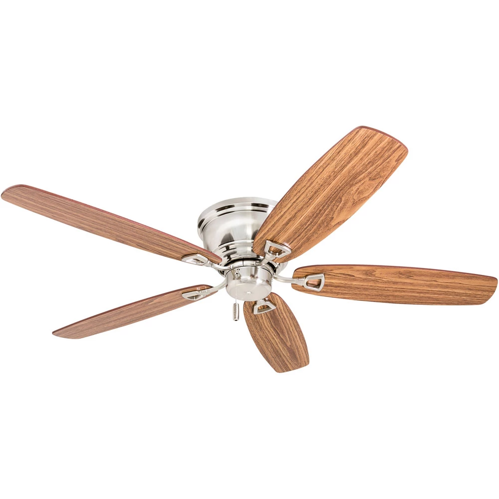Keep your space cool with a Classic Low Profile Honeywell Ceiling Fan. This ceiling fan has a warm design that will complement most spaces. An ideal addition for indoor spaces such as living rooms and bedrooms, this low profile ceiling fan offers additional spaces without sacrificing quality or power. Hang it in a living area or family room to keep things cool in the summer months and then reverse the motor to keep it warm in the winter. This fan is compatible with universal ceiling fan remote controls. The 52 in. Glen Alden Ceiling Fan is energy-efficient and easy to install.