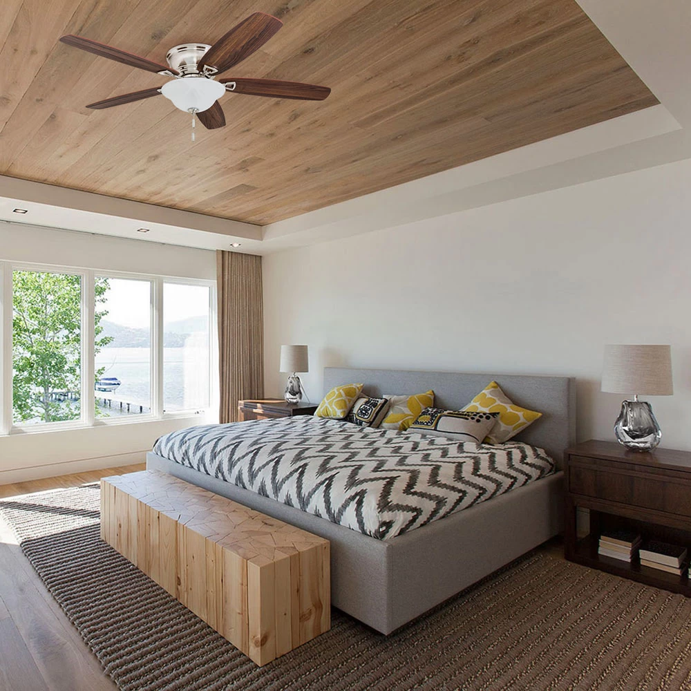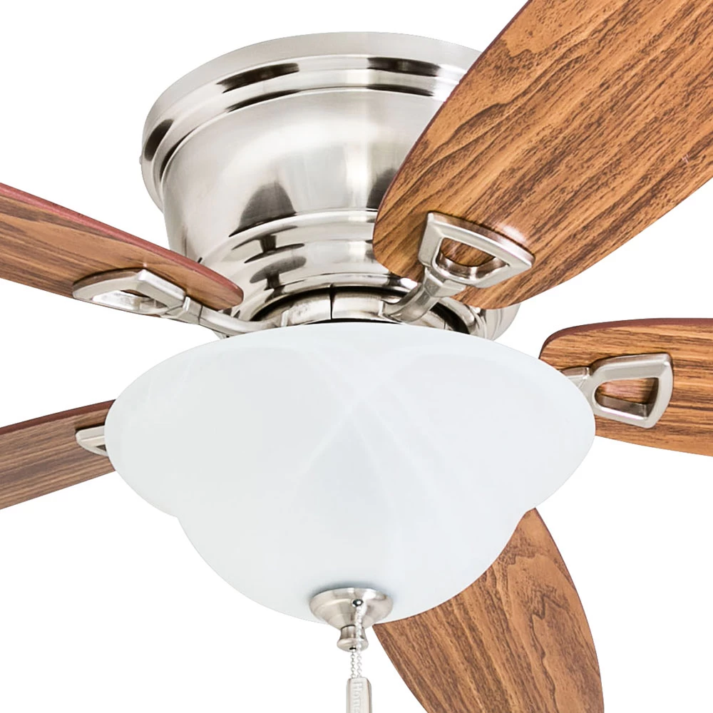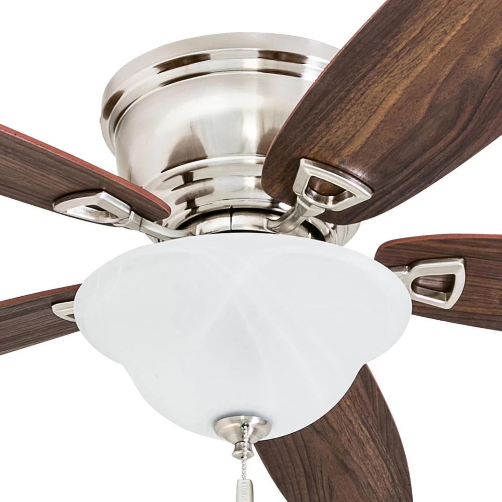 Keep your space cool with a Classic Low Profile Honeywell Ceiling Fan. This ceiling fan has a warm design that will complement most spaces. An ideal addition for indoor spaces such as living rooms and bedrooms, this low profile ceiling fan offers additional spaces without sacrificing quality or power. Hang it in a living area or family room to keep things cool in the summer months and then reverse the motor to keep it warm in the winter. This fan is compatible with universal ceiling fan remote controls. The 52 in. Glen Alden Ceiling Fan is energy-efficient and easy to install.