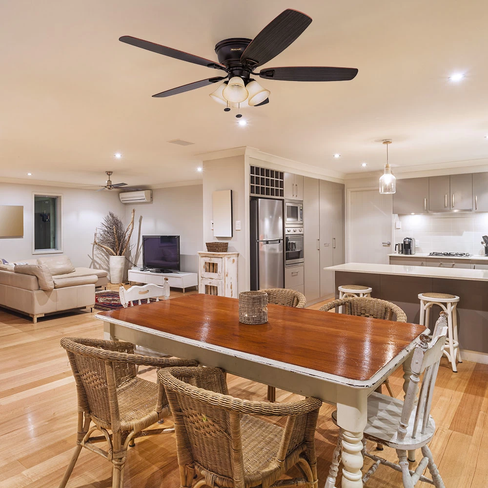 Keep your space cool with the classic look of the Honeywell Glen Alden Ceiling Fan. This ceiling fan boasts a warm design that’s capable of complementing any number of spaces. Stay cool during the summer months by hanging it in living areas or family rooms. Reverse the motor during the winter months to stay warm. This 52 in. ceiling fan is energy efficient and easy to install. You’ll be enjoying the comfort of cool or warm air in no time! The Honeywell Glen Alden Ceiling fan features three mounting options and (4) 40 watt bulbs.