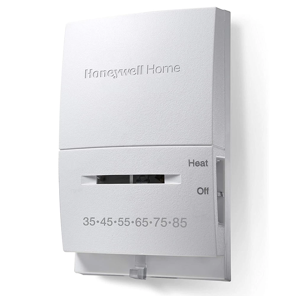 The Honeywell CT50K1028/E Low Temperature/Garage Non-Programmable Thermostat was specifically designed for garages and various other outdoor buildings. This non-programmable thermostat is ideal for when you only need the heat to reach a level just above freezing. The controls have been simplified for an easily accessible and responsive experience. Simply adjust your designated temperature with a conveniently placed slider and embrace the incoming heat. This non-programmable thermostat is mercury free and compatible with gas or oil furnaces, hot water systems with or without access to a pump and central heating systems.