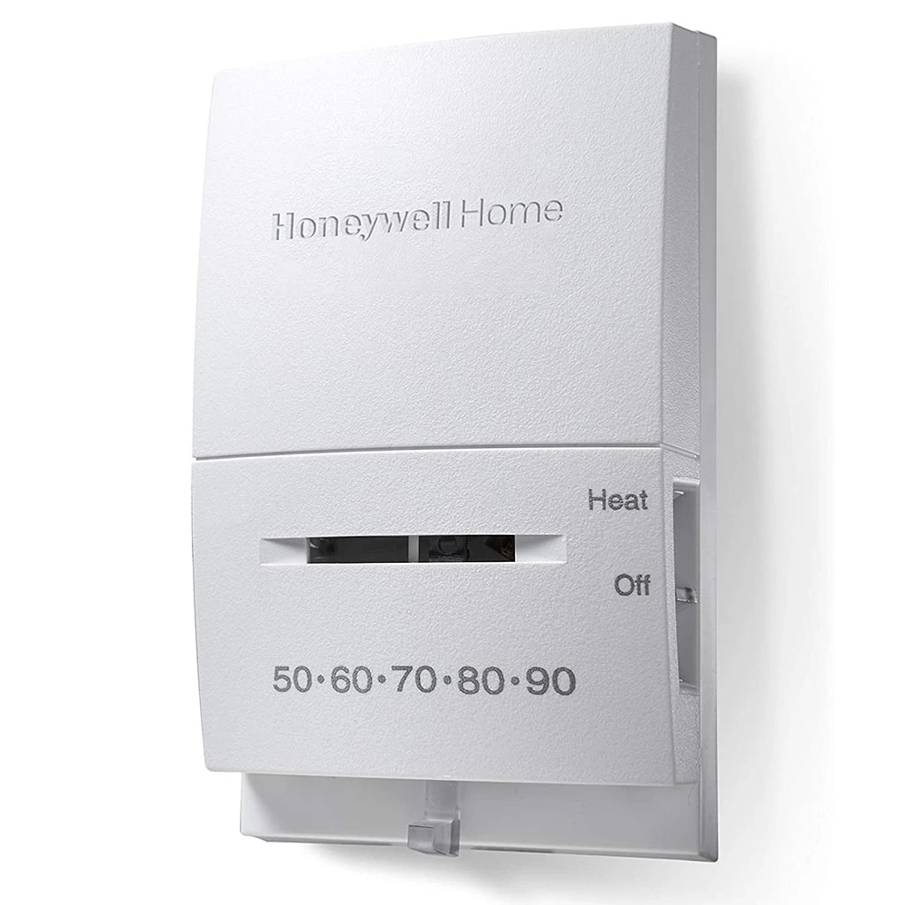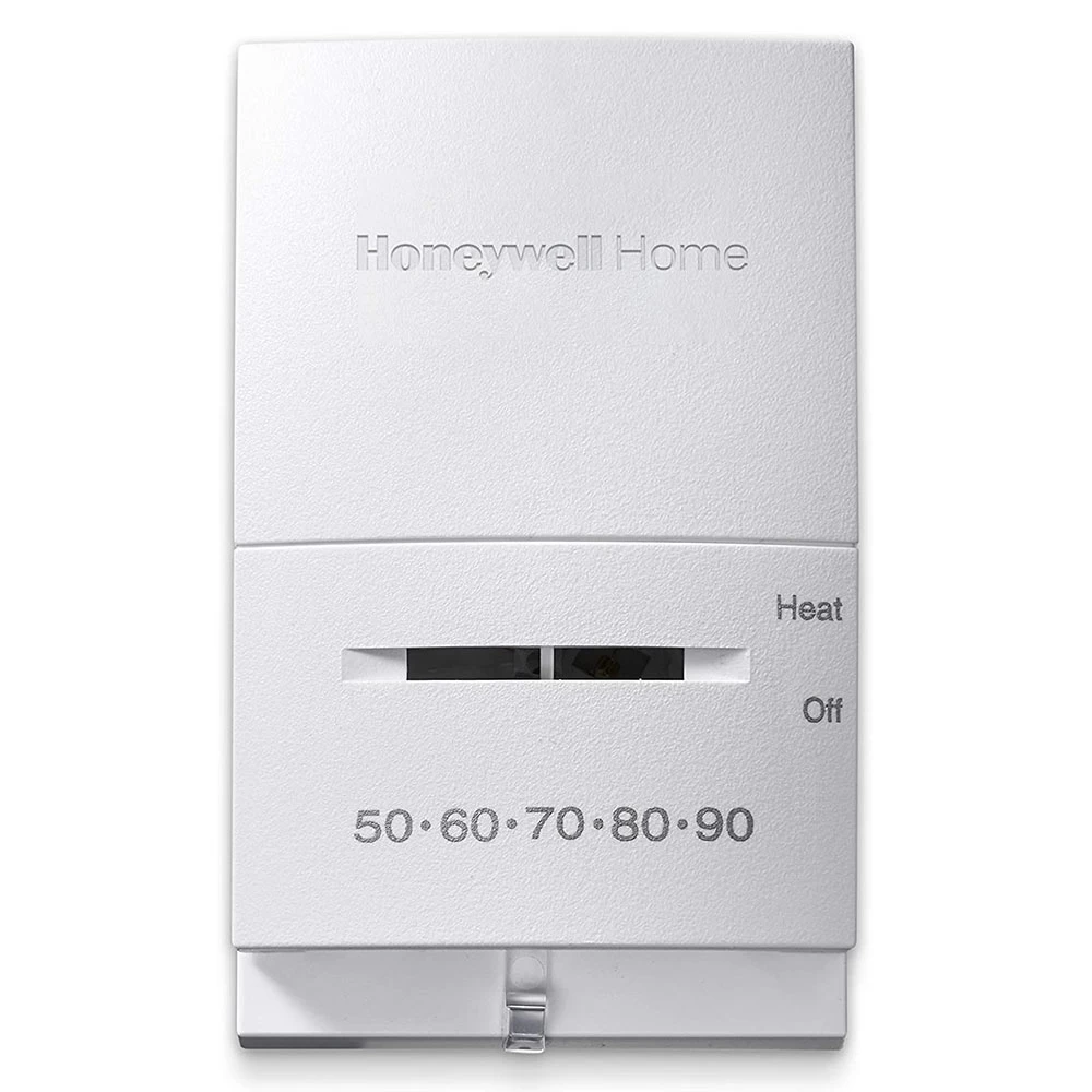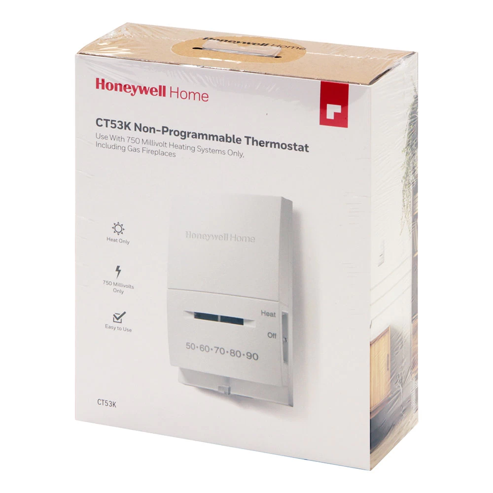 The Honeywell CT53K1006/E Standard Millivolt Non Programmable Thermostat combines the best elements of accessibility and dependability. Incredibly easy to install, this manual thermostat features precise temperature controls that’s ideal for selecting the most appropriate temperature for your household. This non programmable thermostat comes equipped with a quiet switching function, 2 wires and is compatible with 750 millivolt heating systems such as floor fireplaces and wall furnace systems. The CT53K1006/E is a non-programmable thermostat that’s designed for heat systems. For additional peace of mind, this Honeywell manual thermostat doesn’t utilize mercury similar to competing thermostats. This non-programmable thermostat’s compact design, functionality and accessibility make it a must have for those seeking a manual thermostat that’s compatible with heat only systems.