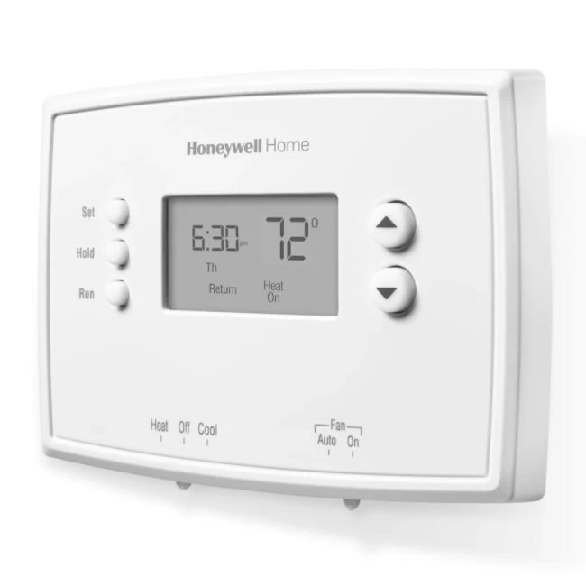 The Honeywell RTH221B Basic 1 Week Programmable Thermostat has one hassle-free program for every day of the week. It is programmable for one week with four options: wake, leave, return and sleep to customize your weekly schedule. Also, it has precise temperature control for added comfort. The Honeywell Basic 1 Week Programmable Thermostat utilizes a crystal clear digital display that allows for precise temperature control. This thermostat is compatible with heating, cooling and heat pumps without auxiliary heat options. Verify compatibility with your home’s heating and cooling system, remove your existing thermostat and follow step-by-step instructions that come with the thermostat for simple DIY installation. Features include: Simple programming (one program for entire week, plus four options per day), Easy to use, Precise temperature control, One-year warranty & Easy DIY installation.