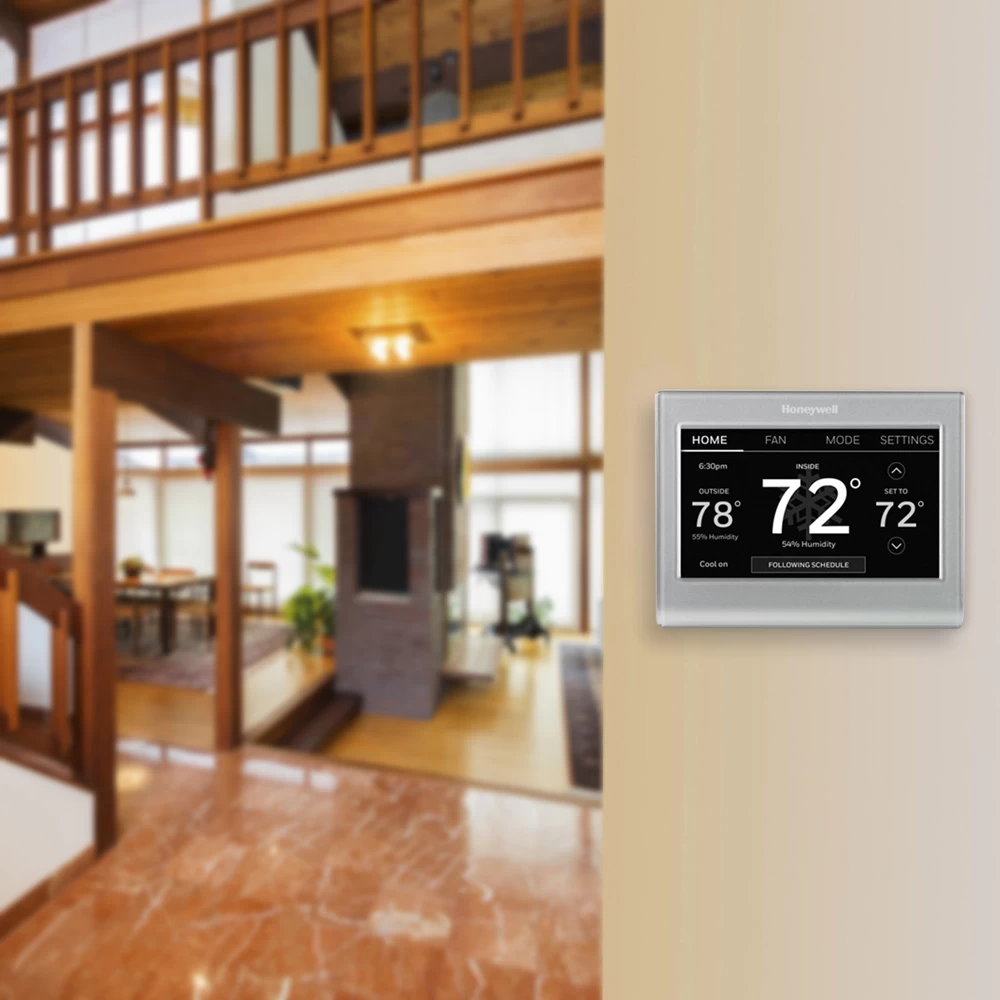 The Honeywell Second Generation RTH9585WF1004 Wi-Fi Smart Color Thermostat is designed to fit the individual. The creation of a custom schedule will satisfy comfort needs while optimizing energy savings. Smart Response Learning eliminates the guessing work out of programming by allowing the Wi-Fi Smart Color Thermostat to learn preferred heating and cooling cycle times. This feature ensures the correct temperature right when it’s required. The inclusion of a customizable color touchscreen display will invite owners to create their own unique look when matching their home’s surrounding decor. The Honeywell Total Connect Comfort App provides immediate and convenient access via smartphone, tablet or computer. This level of access and customization ensures the ultimate in peace of mind as owners will have complete control regardless of setting. Intelligent Alerts add even more layers of versatility by informing homeowners when air filters and humidifier pads require changing. The Honeywell RTH9585WF1004 Wi-Fi Smart Color Programmable Thermostat offers the best of both worlds in performance and versatility by utilizing Amazon Alexa and a selection of Smart/Intelligent Features.