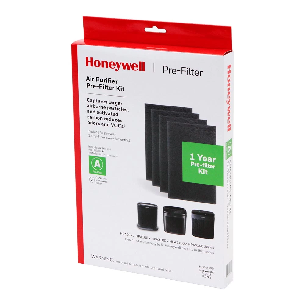 Honeywell Pre-Filters are made with activated carbon to deodorize the air and reduce odors involving cooking, smoke, pets and the bathroom. Honeywell HRF-A100 Pre-Cut Carbon Pre-Filters are designed for medium room HEPA air purifiers. This set of Honeywell Pre Filters is compatible with the following Honeywell Air Purifiers: HPA094, HPA100, HPA101, HPA104, HPA105, HPA106, HPA3100, HPA5100 and HPA5150.