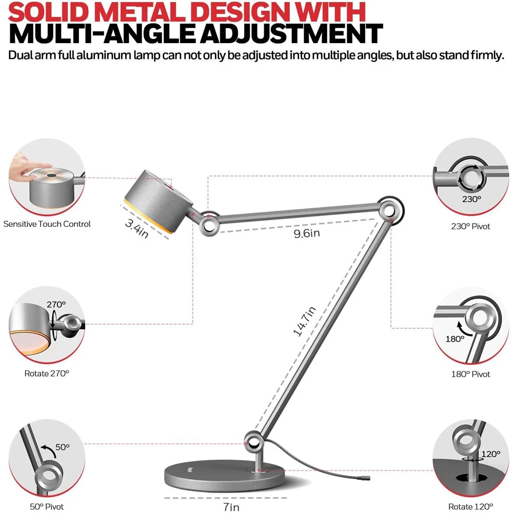 The 5-pound disc base keeps the desk lamp firm on the table, so that it doesn’t tip over easily.
