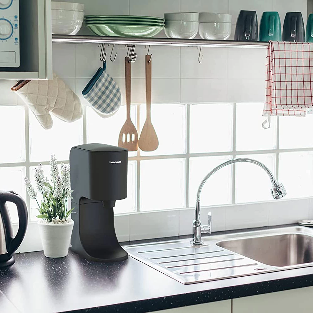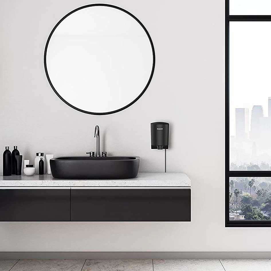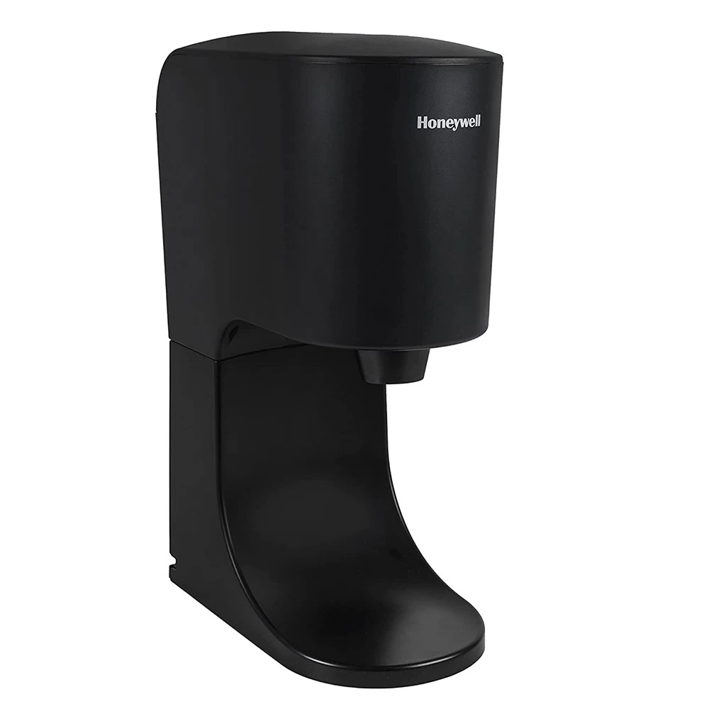 The Honeywell Personal Hand Dryer HPD-100B implements touchless technology that you can bring to your home or workplace. This is an eco-friendly dryer that will reduce the need for paper and cloth towels. Equipped with a dual directional air outlet, this electric hand dryer will have hands dry in a few short seconds. The base of the touchless hand dryer is coated with a specially formulated antimicrobial surface treatment that protects against bacteria and viruses. This personal hand dryer can be placed on a countertop or mounted to a wall and is perfect for any bathroom, kitchen, or breakroom.