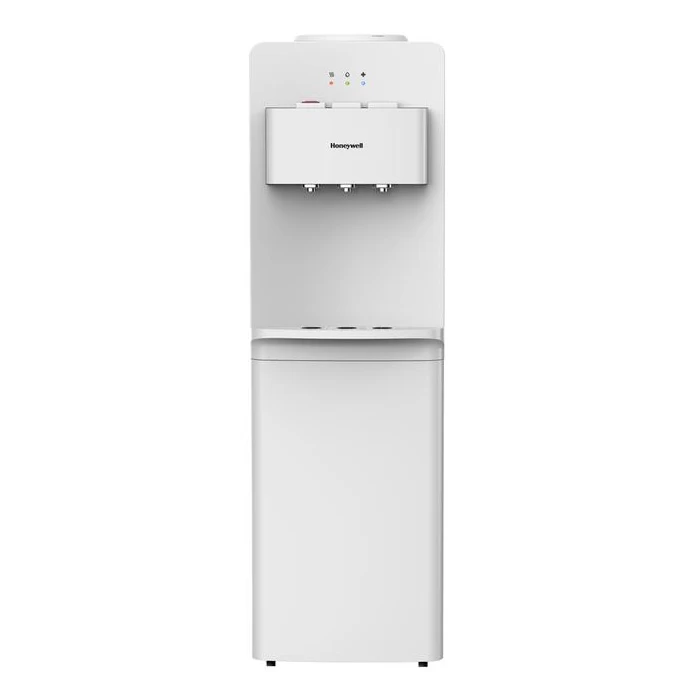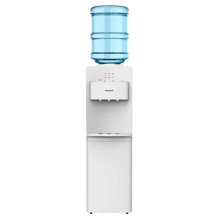 The Honeywell Top Load Tri-Temperature Water Dispenser offers a convenient and readily available solution to help you stay hydrated at home or in the workplace. This Top Load Water Dispenser comes with three easily identifiable push buttons that dispense hot, room temperature and cold water on command. Overall safety has been enhanced with the addition of a child safety lock that’s capable of preventing accidental burns from the hot water push button. Sleek, efficient and extremely versatile, this Honeywell Top Load Water Dispenser is the perfect solution for incorporating fresh water in the home or workplace.
