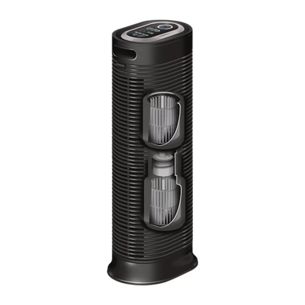 The Honeywell HPA160 Air Purifier uses a True HEPA filter that helps capture up to 99.97% of microscopic allergens.1 The carbon pre-filter also helps in the removal of odors and VOCs in the surrounding area.2 This makes it an excellent choice as a pet air purifier or air purifier for dust. Incredibly compact in design, this portable air purifier carries additional versatility with its strength of circulating air up to 4.8 times an hour in rooms as large as 170 sq. ft. 3 The home air purifier comes programmed with three settings, an auto-shut off timer, easy tap electronic controls and electric filter replacement reminders.