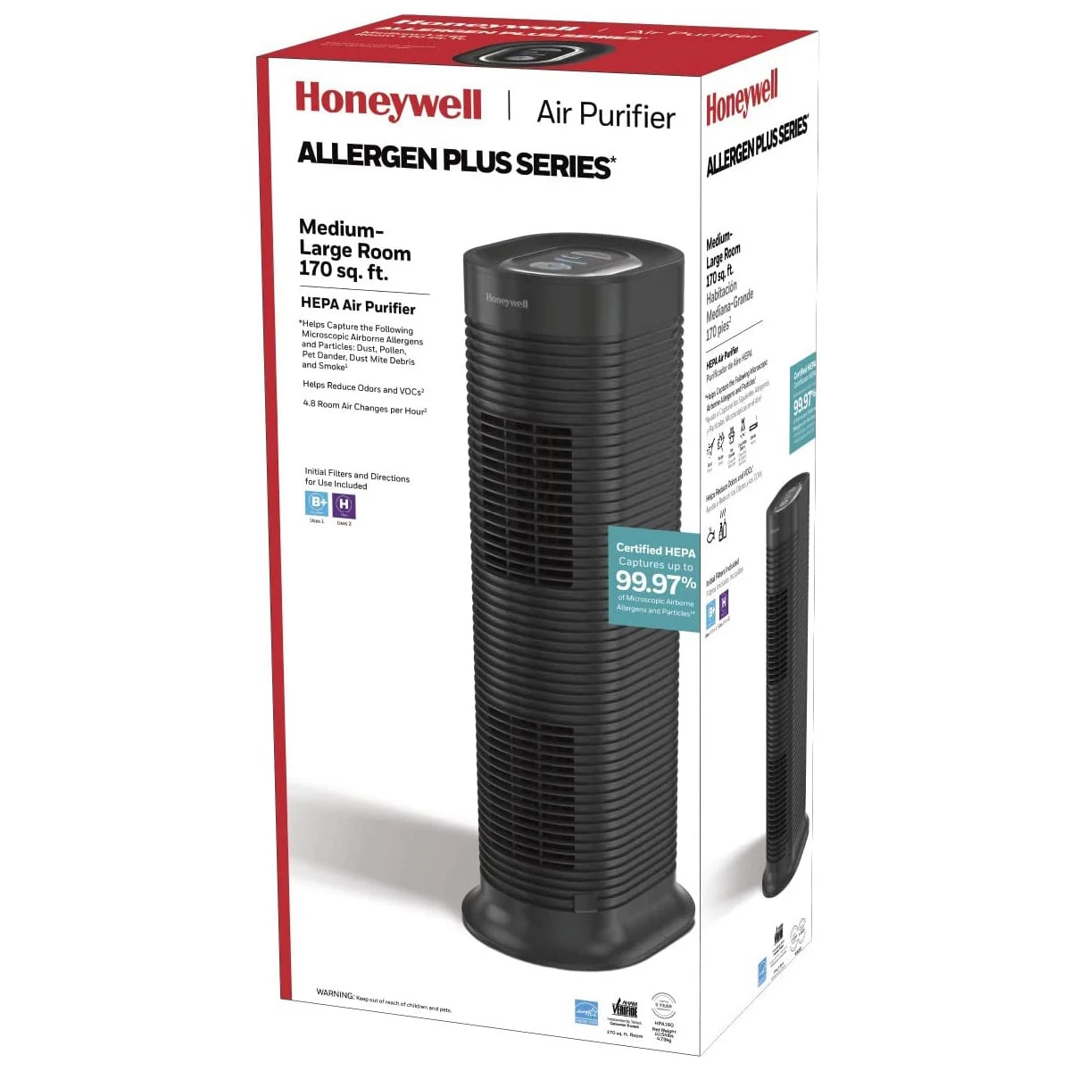 The Certified Honeywell True HEPA H Replacement Filter helps capture up to 99.97% of microscopic allergens, 0.3 microns & larger from any air passing through the filter. For optimal cleaning performance, replace your HEPA filter every 12 months. The filter check/reset light on the HPA160 Air Purifier will remind you when it’s time to change your filter. Initial filter included.