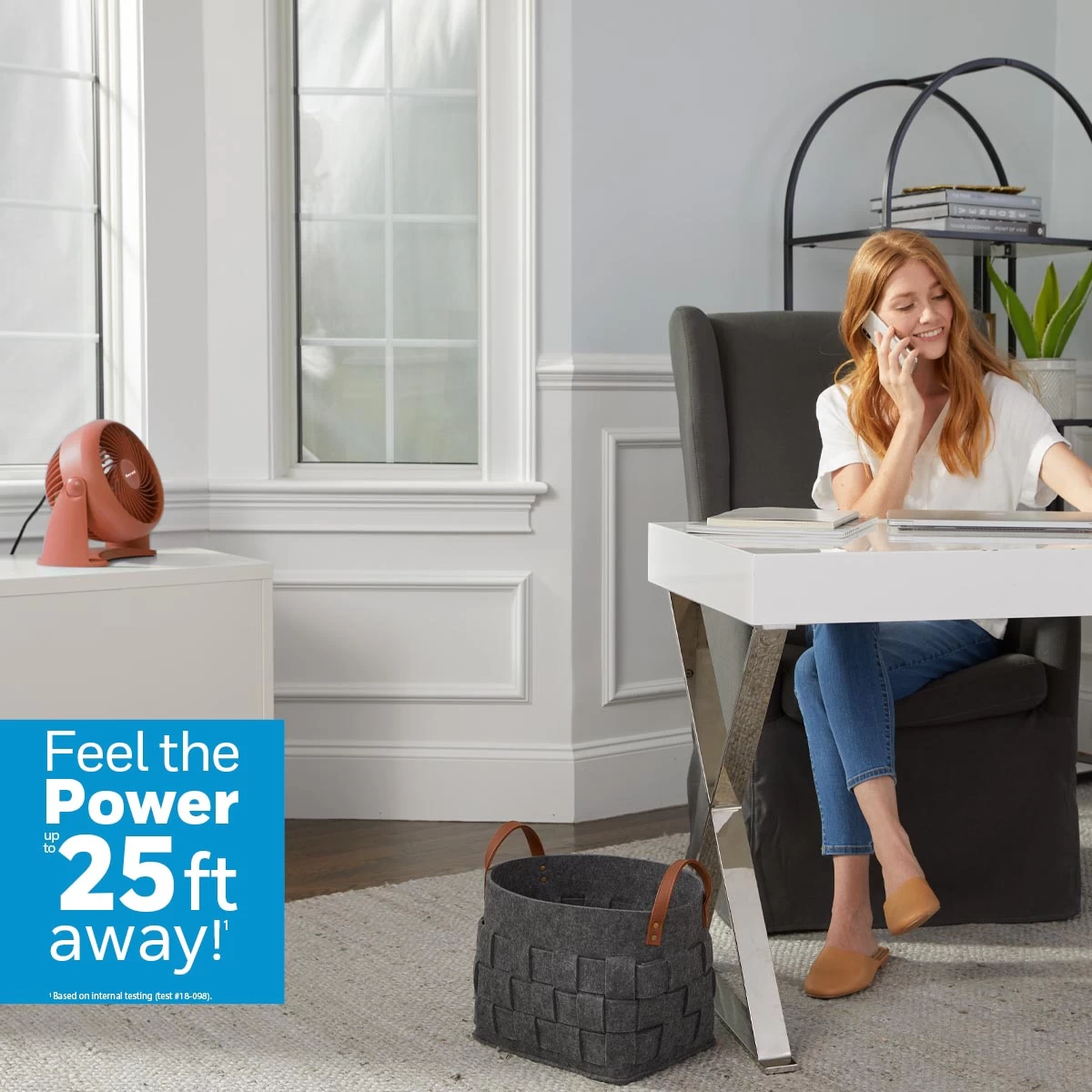 Feel the blast of the TurboForce Power Air Circulator Fan from 25 ft. away! This portable fan’s 3 speed settings and 90° pivoting head are designed to work with the cooling and heating in your home to create a custom comfort zone. Uniquely engineered fan blades provide quiet, powerful personal cooling that’s great on a tabletop or mounted to the wall in your home or office.