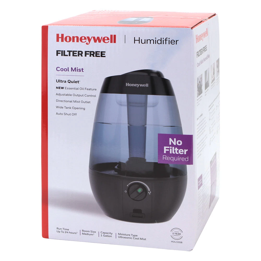 The Honeywell Ultrasonic Cool Mist Humidifier is an excellent addition for those searching to establish an improved breathing environment. Providing the height of convenience and efficiency, this humidifier by Honeywell features an ultra-quiet operation and an auto shut-off function when the tank is empty. Accessibility has also been addressed with the utilization of a large tank opening that allows for easy filling and cleaning. The Honeywell Ultrasonic Cool Mist Humidifier discharges visible cool moisture in multiple output settings. An essential oil feature has been added for increased comfort and customization. This humidifier is an ideal fit for medium sized rooms and is capable of running for 24 uninterrupted hours per filling.